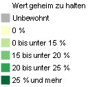 | Abstract | Der Anteil der Bevölkerungsgruppe unter 18 Jahren ist das Verhältnis der Anzahl der Personen unter 18 Jahren zur Gesamtbevölkerung je Gitterzelle in Prozent und basiert auf den Daten des Zensus 2011. Im Ausland tätige Angehörige der Bundeswehr, der Polizeibehörden und des Auswärtigen Dienstes sowie ihre dort ansässigen Familien werden bei dieser Auswertung nicht berücksichtigt. | ||||||
