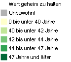 | Abstract | Das Durchschnittsalter der Bevölkerung (in Jahren) ist das Verhältnis der Summe der Altersjahre der Gesamtbevölkerung zur Gesamtbevölkerung je Gitterzelle und basiert auf den Daten des Zensus 2011. Im Ausland tätige Angehörige der Bundeswehr, der Polizeibehörden und des Auswärtigen Dienstes sowie ihre dort ansässigen Familien werden bei dieser Auswertung nicht berücksichtigt. | ||||||